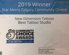 We would like to thank EVERYBODY that voted for us during the Community Choice Awards. Your votes have earned us the title of 2019 BEST TATTOO STUDIO in Calgary, AB. Thank you Star Metro Calgary for running these awards and for giving us the opportunity to be recognized as one of Calgary's top businesses.